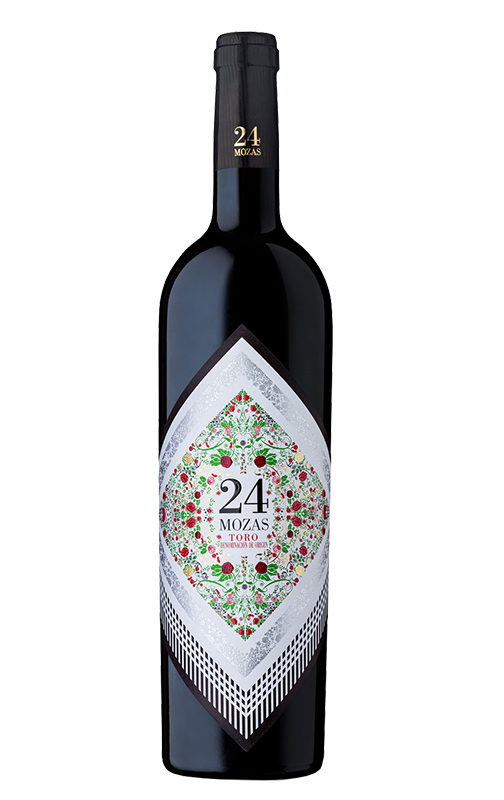 Con el vino ‘24 mozas’ rendimos homenaje a la ciudad de Toro y su rico folclore. Las 24 mozas protagonizan la copla ‘Tío Babú’, una canción en la que se relata la historia de una tradicional boda toresana a la que no “iban 24, iban 25 porque iba la novia”. Los históricos viñedos de la Vega de Toro y la melodía de ‘Tío Babú’ resurgen al descorchar cada botella de nuestro crianza ’24 mozas’ . Su etiqueta ilustrada con un manto de mantilla floreado que forma parte de la indumentaria femenina típica de la zona. Apto para disfrutar desde el momento de la compra, tiene también un buen potencial de guarda.
