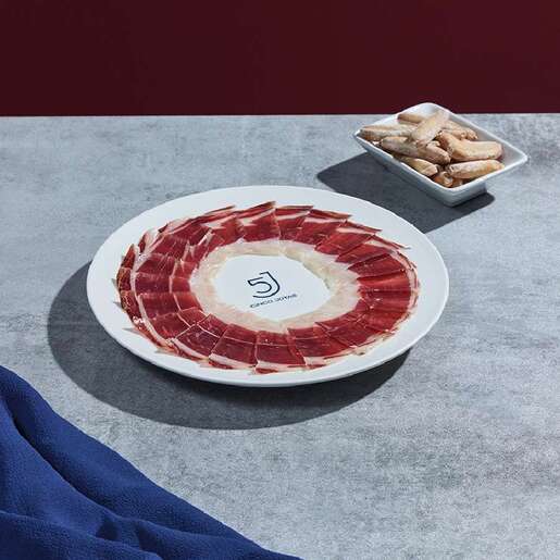 Un ritual de jamón Cinco Jotas cortado. El auténtico sabor ibérico en forma de packs especiales y ediciones limitadas. Regalos gourmet pensados para los paladares más selectos.
