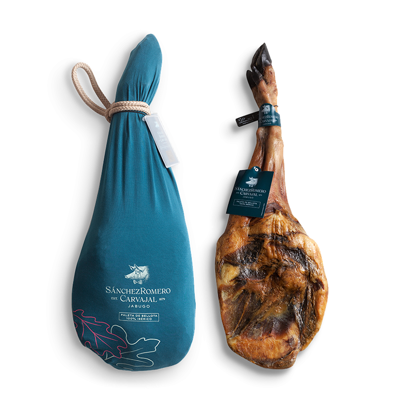 Esta Paleta de Bellota 100% Ibérica de Jabugo Sánchez Romero Carvajal tiene la distinción ‘brida negra’, que representa la mayor calidad en productos ibéricos. La normativa del ibérico plantea una serie de requisitos para la obtención de la ‘brida negra’. En Sánchez Romero Carvajal los superan ampliamente, al proporcionar a sus cerdos 100% Ibéricos más del doble de espacio que la normativa exige para que puedan vivir y alimentarse.
