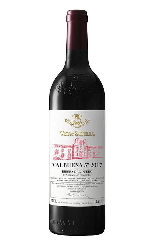 Valbuena 5º es la expresión más pura del tinto en Vega Sicilia, con una crianza de cinco años entre madera y botella, que da su nombre al vino: Valbuena 5º.
