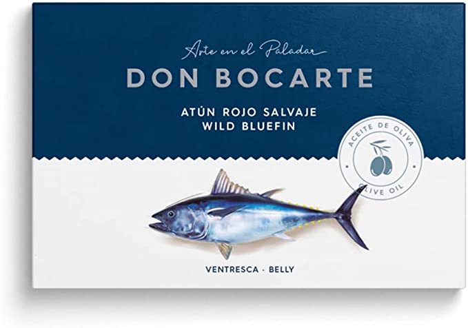 El pescado Don Bocarte se prepara siempre con lomos frescos de grandes atunes rojos, siguiendo la tradición artesanal. El productor: Don Bocarte es uno de los productores de mariscos gourmet más importantes de España. Con base en Santoña, son pioneros en la conservación del aceite de oliva de pescados y mariscos.
